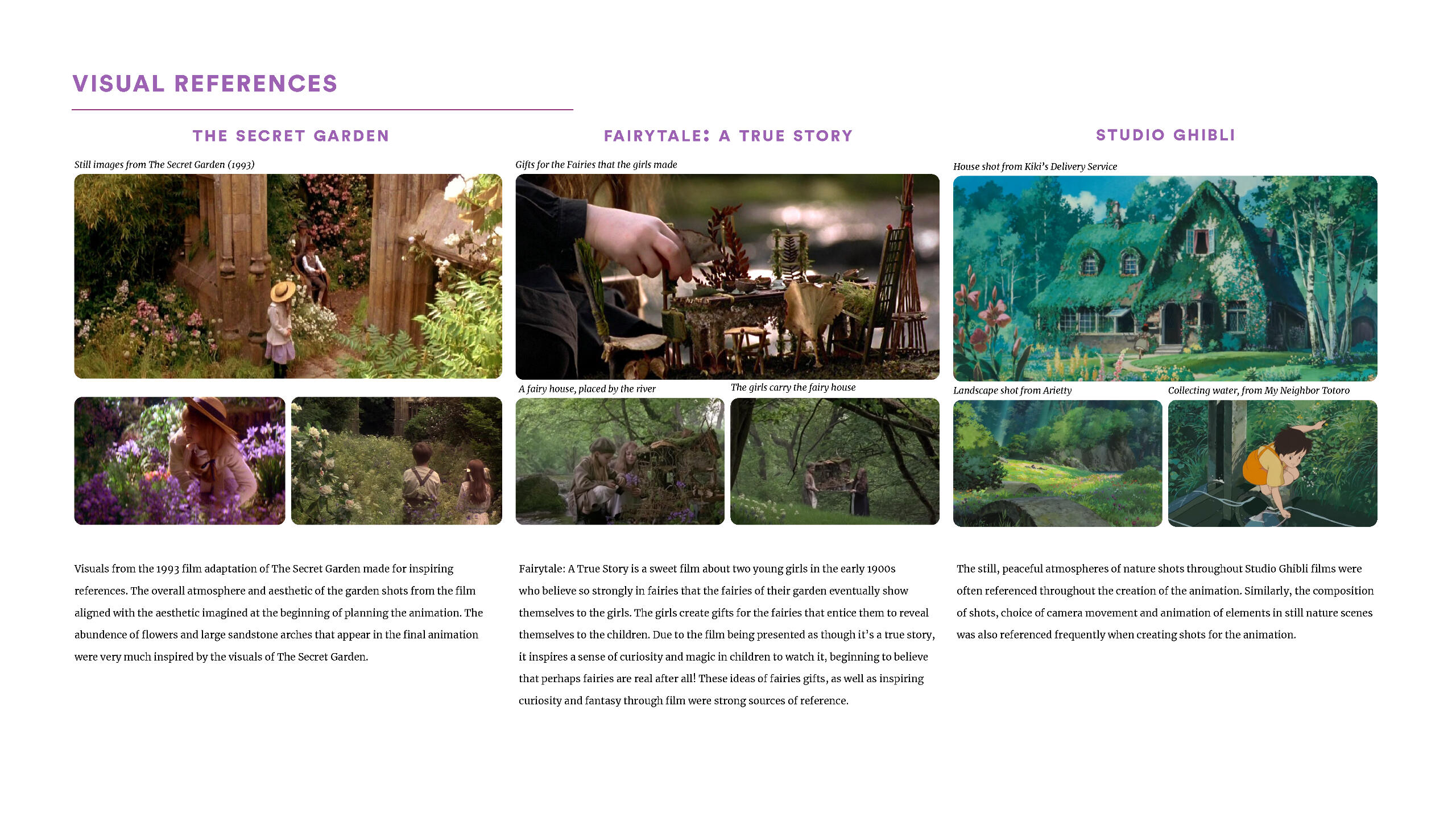 ‘Secrets of the Garden’ is a 55 second animation that explores the magic of Grandma’s garden.As the day progresses; more and more magical happenings start to occur in the garden, with secrets being revealed. The animation explores not only the people who inhabit the garden, but also the spirits and magic of the garden.