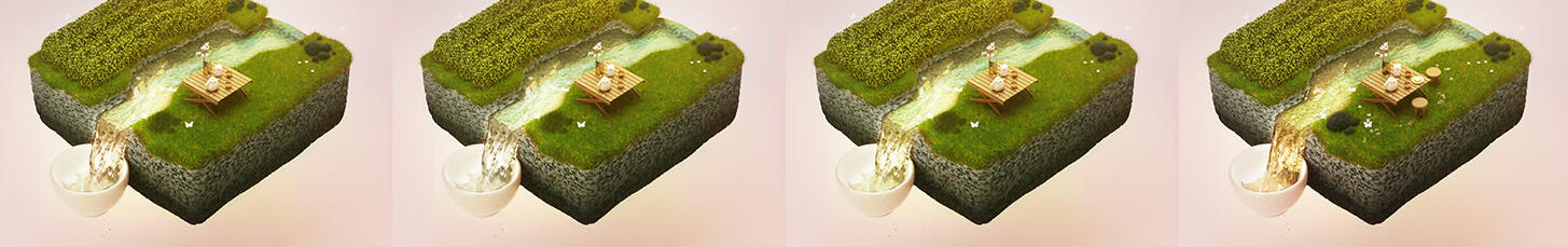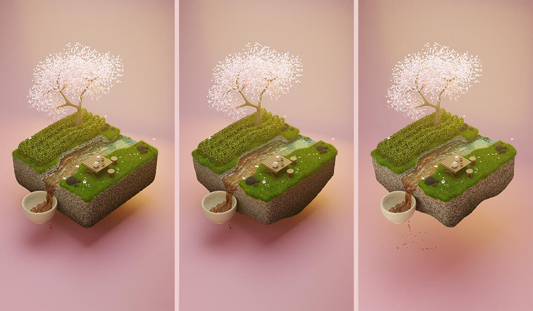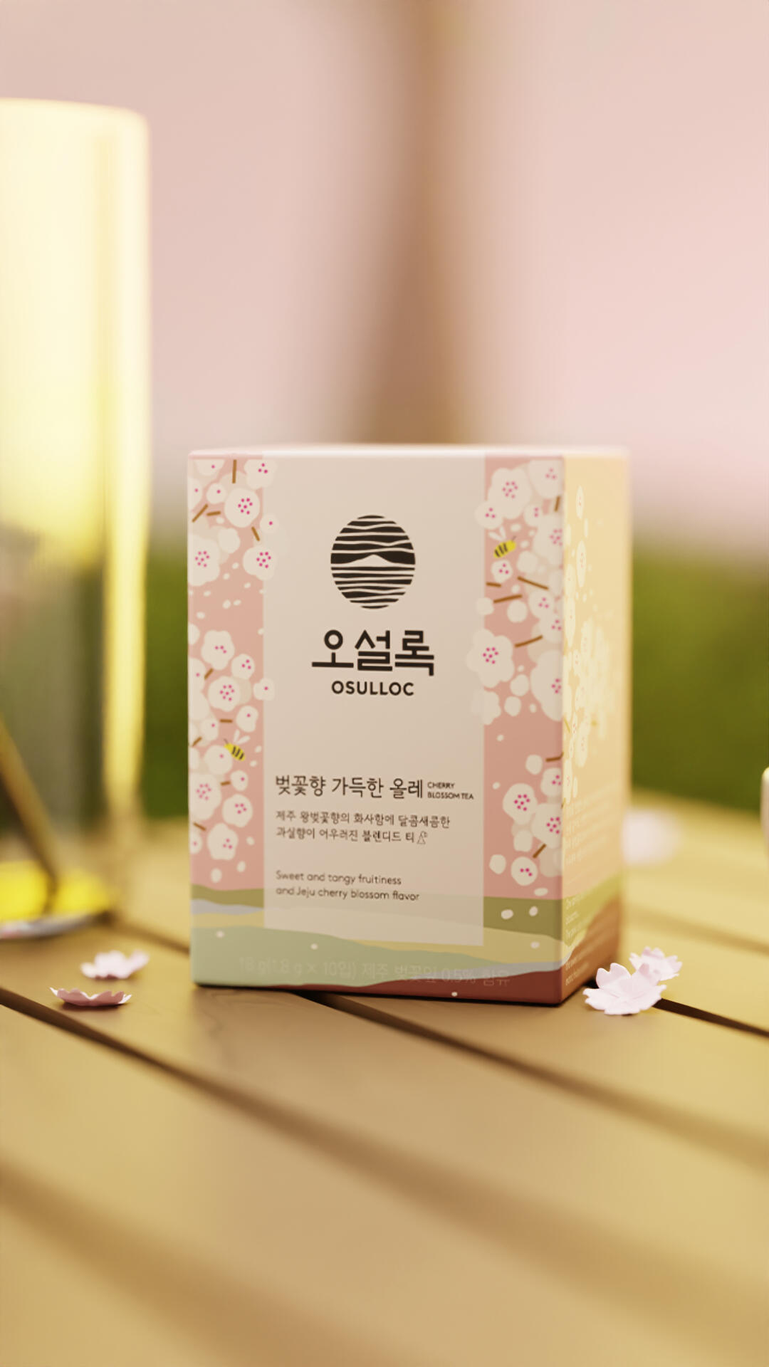 The most challenging parts of this project were the texture of the rock formation (aiming to match the volcanic rock texture naturally occuring on Jeju island), reaching the correct lighting and background colour & ensuring the tea colour was accurate to the colour of Osulloc's Cherry Blossom Tea.