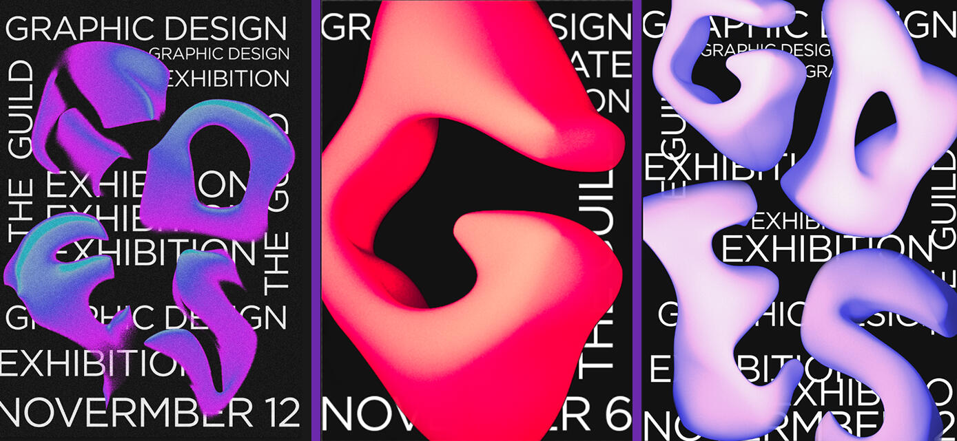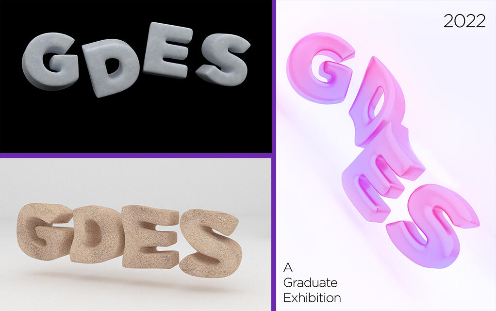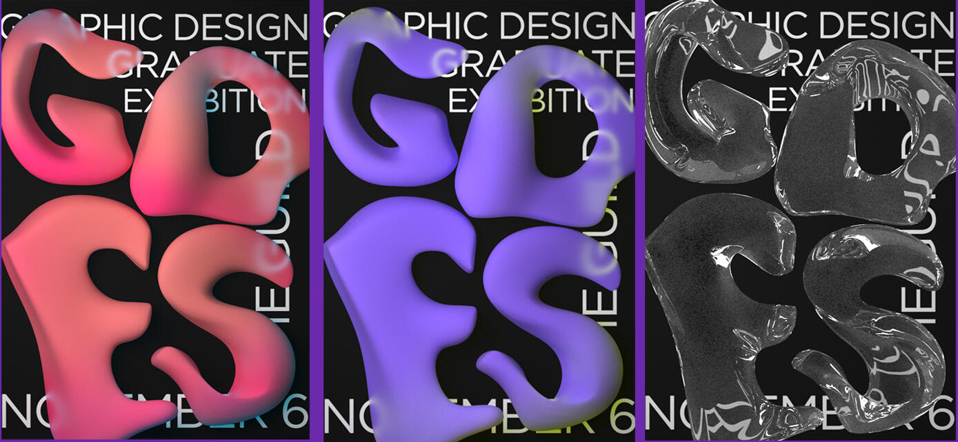 The project began with creating prototypes of the letters GDES in Blender to then be used in the first draft of the poster.