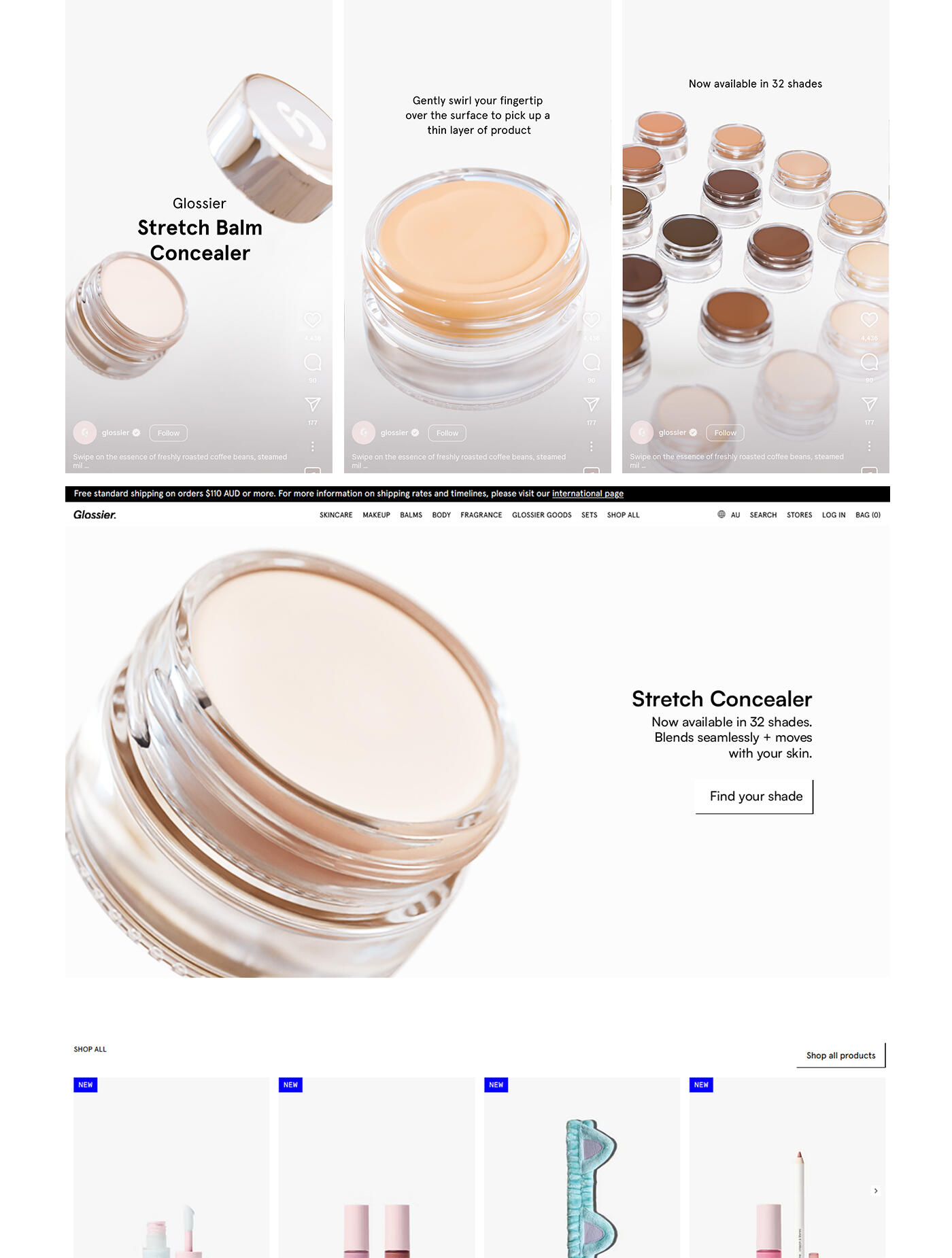 This 3D motion project was created in Blender, exploring how to promote Glossier's Stretch Concealer. The goal was to answer key customer questions with fun motion that will capture the attention of scrollers. Optimised for use in Meta ad campaigns, as well as across social media assets and web.This project combines the 3D Motion campaign package and email campaign design package.